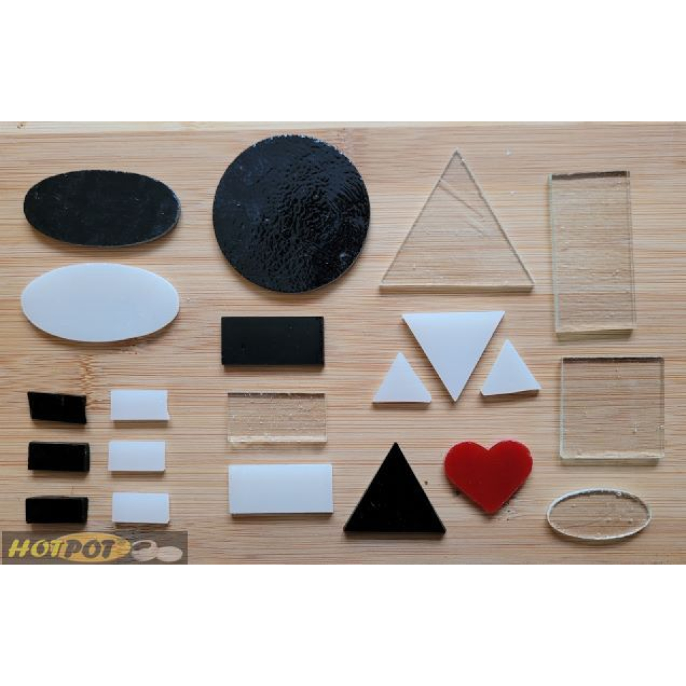 Dikte van deze vormen is ongeveer 3 mm.